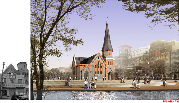 外滩原英领馆地段在地域上是指西至四川中路,东至中山东一路,南至北京东路,北至南苏州路,处于黄浦江和苏州河交汇处的区域,“东扼水道咽喉,西窥吴地丰产”,以外滩33号原英领馆、新天安堂、牧师宿舍和划船俱乐部一组早期坡顶清水砖墙建筑群,无疑是外滩时空之首,其西侧的圆明园路街廓建筑包括了西洋宗教、传媒、学校等文化机构,可称为退后的“西风外滩”。由于种种历史原因,这一地段在现代成为了繁华外滩中被遗忘的角落,环境杂乱,建筑破败,交通拥堵。2000年,常青研究室接受了新天安堂实测和修缮设计及外滩源保护与再生概念设计任务。