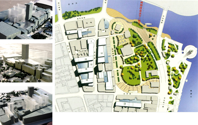 概念设计从建筑人类学的历史场景解析入手,对“外滩源”地段作了深入了历时性研究(发表了研究成果并出版了专题博士论文)。提炼了“外滩源”近代变迁的四条主线:地脉特征——黄浦滩头的“金转角”、地段雏形——水滨街区的西洋景、市政设施——租界兴起的物质基础、周边关联域——城市生长的腹地。发掘整理了“外滩源”的丰富历史内涵:英领事馆、宗教圣地、西风东渐的场所。采用了空间设计场景化、交通组织步行化、街区改造重置化的方法,将“外滩源”设想为具有地方特色与国际的“都市综合体”。最早提出了结合“外滩源”再生,拆除闸桥,将外滩快车道改走地下(水下)的构想。