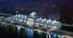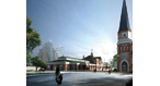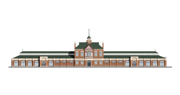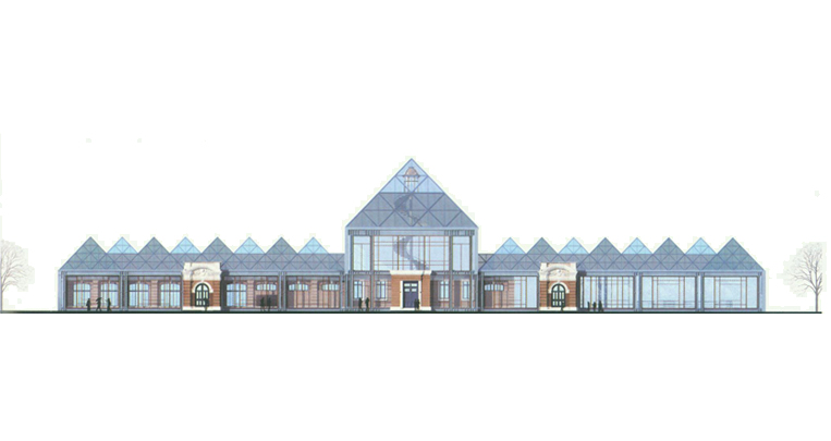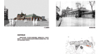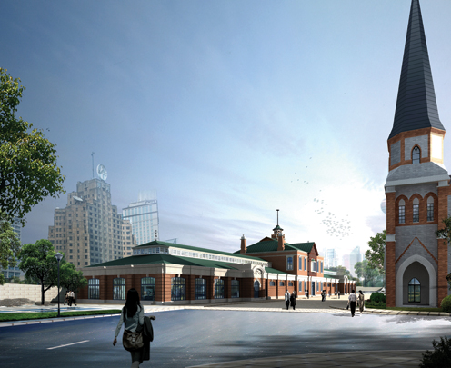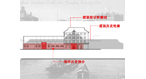方案一为历史外观复原,根据历史图纸、照片及测绘图纸,修缮现存部分、复原拆除部分,完全恢复历史建筑红色清水砖墙绿色瓦屋顶的外观,仅根据环境特色调整开窗形式。建筑东翼充分利用室内净高,对空间进行竖向分割,使屋顶内部成为可自由分隔的大空间,而屋顶天窗的存在既解决了采光问题,亦为该部分空间增色不少。方案二重塑历史天际线,作为对新建筑的首要控制条件,新元素构成的折线形天际线轮廓与平直线形的历史天际线相重合,以纯净的玻璃方锥体的屋顶形式,与新天安堂的哥特式三角母题相呼应,既形成历史街廓,又为滨水景观增加了空间层次。将现存西翼及中部最具艺术价值的门头作为历史片段保留,并在新建筑东翼相应位置复原相同片段,使之成为新建筑中现代与历史的交流部分。