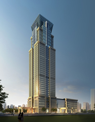 本案位于许昌市东城区,建安大道与莲城大道交叉口以西的东湖城市绿地旁。基地交通便捷,处在城市高速路下口进入城市的主要干道边,与城市中心的空间联系紧密。方案构思来自“问鼎中原”,以现代材料与手法,表现出挺拔的竖向塔状划分,厚重的表皮质感,四足巨鼎般的斗状上部,形成了造型独特、寓意深长的高层建筑形象,象征了古都许昌的繁荣昌盛。