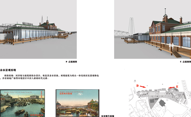 采光的玻璃屋顶将室外景观引入室内,通过草坡消除防汛墙对视线的遮挡,将人流引向滨水空间,同时将新建筑与新天安堂、英领馆构成的历史建筑组群展开于苏州河畔。
