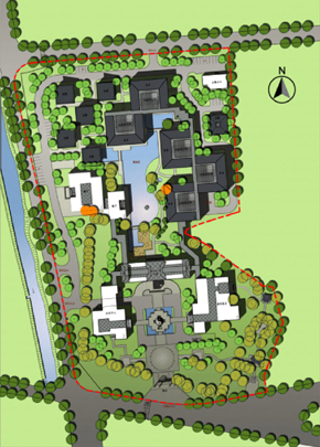 鹤翔山庄设计凸显“道家第一客栈”的文化主题,顺应地脉,融入地志,优化环境,布局收放自如,隐喻道家智慧,以象征性手法抽象再现山庄空间意象。举如主体建筑以歇山-半歇山;阴爻窗-阳爻窗,月洞-半月洞;以及楼庭-别墅等阴阳耦合等,表达了道家“道生一,一生二,二生三,三生万物”的寓意。整个设计古韵浓厚而不生硬仿古,新风清丽而不为新而新。