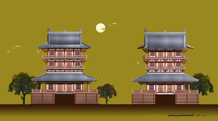 史载曹操于建安年间迎汉献帝于许昌,进位丞相,挟天子以令诸侯,加九锡,封魏王。在其故地建曹操纪念馆是具历史文化意义的。方案设计采用前朝后寝的总体布局。馆外广场建有颍川群贤坊、萧墙,馆门前设东西双阙,门内前院两侧各有望楼一座。中轴线上,前朝的求贤堂、议事堂、东西堂,后寝的寝门、寝殿、东西厢、七步阁、后府门依次排开,整座建筑群均按汉魏制度坐落在1.8-4.5米的井干高台上,其中由议事堂至七步阁的纵列核心建筑共同坐落在中央井干台上。建筑形式参照汉画像砖等图文资料,在比例尺度上予以细致的控制和推敲,并采用曲栾、直屋面等以凸显汉魏时的建筑风尚。